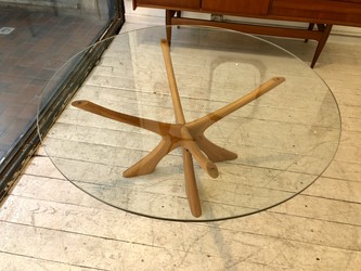 F 817 FD Solid oak and wrought iron coffee table by Jean-Charles Moreux France 1950s