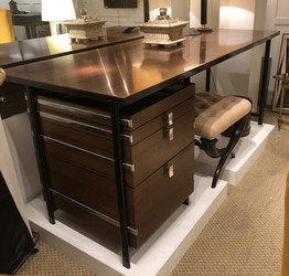 F 776 JC Travertine and patinated metal coffee table signed Fedam 1980s
