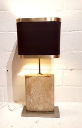 L 683 JC Travertine and patinated metal table lamp signed Fedam 1980s